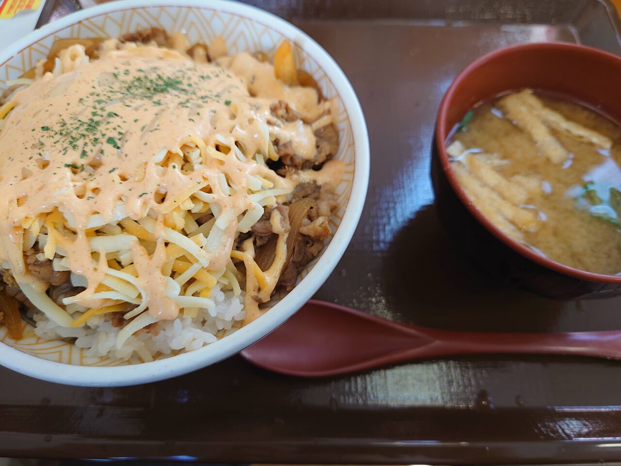 チーズ牛丼と味噌汁は合わなくない?